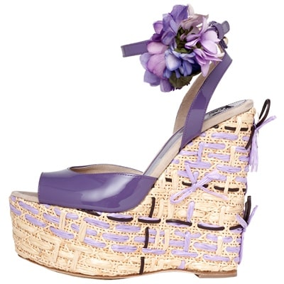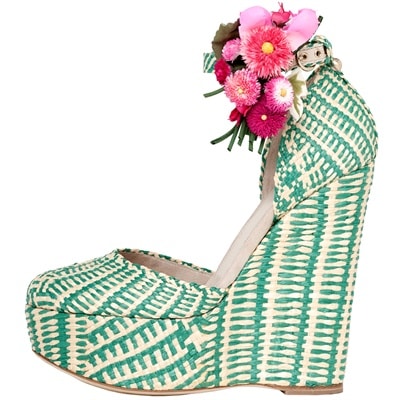 Ma ora parliamo di prezzi: le scarpe rosse a listini e le zeppe viola (modelli in vernice e rafia) costano 445 euro, le zeppe bianche con fantasia floreale costano 465 euro. Per poter acquistare le scarpe verdi e bianche a righe orizzontali dovrete spendere invece 545 euro. Non sono sicuramente cifre accessibili a tutti, d’altra parte stiamo parlando di scarpe esclusive ed originali che attireranno sicuramente gli sguardi sui vostri piedi al pari dei sandali Louis Vuitton per la primavera estate 2011 o delle scarpe Fendi color block che vi ho presentato, come spesso accade, per prima 😉
