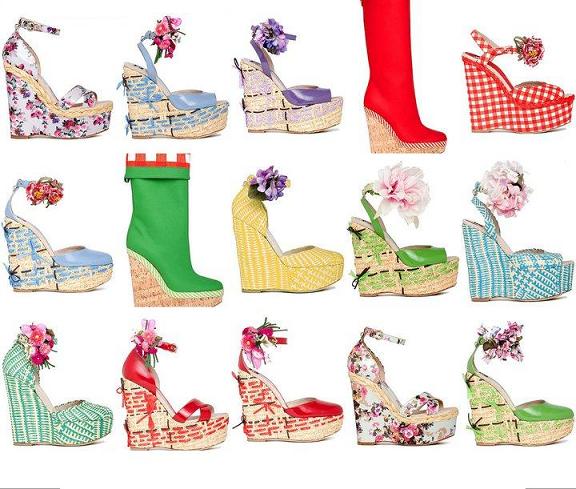 Una collezione di scarpe primavera estate più fiorita non la troverete, le scarpe con tacco della linea D&G di Dolce & Gabbana sono decisamente ispirate ai fiori che sbocciano in primavera per poi fiorire in estate sulle nostre caviglie. Le zeppe alte diventano comode grazie a plateau decisamente alti che attutiscono il tacco e si colorano di righe, fiori e impunture.