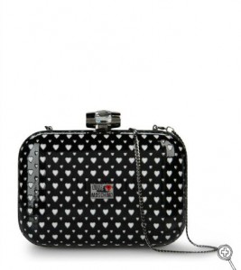 Moschino Love p/e 2013 è una linea ricca di colore: il verde Tiffany, il rosa fuxia, l’azzurro intenso, il rosso, il nero e le tonalità pastello metallizzate sono quelli più presenti. Le stampe invece sono quelle di romantici cuori bianchi su fondo nero, qualche volta capovolti, oppure le figure femminili stilizzate che ricordano un po’ i disegni dei bambini, o ancora la stampa a quadretti che miscela rosso e bianco, palazzi rinascimentali o testi che riportano il brand in venature d’oro su tutta la borsa. Dettagli glam rock su handbag o pochette in metallizzato con borchie dorate, argentee o color bronzo.