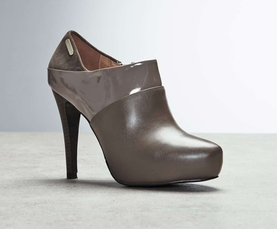 Iniziamo con la décolletés “Gaudì” in vera pelle, con punta e profilo in vernice, tacco 11 cm e logo metallico, per uno stile molto classico ma elegante. Disponibile nei colori grigio, nero o ottanio (euro 109,90). Dalla linea classica ed elegante è anche la décolletés con plateau in ecopelle scamosciata, tacco da 12 cm e fiocco in metallo e gros gain sulla punta, disponibile nelle quattro bellissime varianti di colore che vi mostriamo nella galleria fotografica sottostante (euro 94,90). Ma si inizia a fare sul serio con la scarpa décolletés spuntata con plateau in velluto nero, con inserto e tacco 12 cm color bronzo (euro 94,90).
