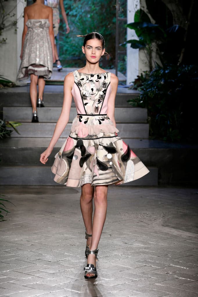 Capi come opere d’arte: abbiamo usato la parola “osare” e la abbiamo associata a sobrietà, ma se chi c’è preferisce la rigorosità delle linee e la tinta unita, c’è chi rischia ricorrendo a forme originali, poco ortodosse e a tanto, tanto colore. L’importante è, come dicevamo, non scadere nel cattivo gusto. Se si osa con il colore a maggior ragione vale la regola del less is more. I protagonisti sono i vestiti, i loro giochi cromatici, spesso e volentieri legati al multicolor ed ispirati a paesaggi esotici e dipinti d’autore. La moda primavera estate 2014 viaggia dall’Oriente all’Occidente, zooma sui paesaggi esotici e su spettacolari scorci italici, e volentieri si ispira ai dipinti dei grandi artisti. Così la collezione primavera estate 2014 MSGM è dedicata ai colori dell’arte contemporanea e alla musica Indie; Dolce & Gabbana primavera estate 2014 scegli i paesaggi storici italiani per borse e clutch e fantasie floreali su colori pastello per i romantici vestiti che si ispirano alla donna degli anni ’50.